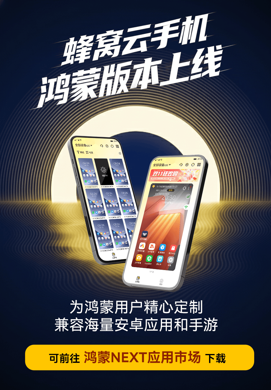 新春佳节,团圆才是底色,福利也绝不能缺席!蜂窝云手机靠稳定托管、无限制多开站稳核心优势,用亲民定价、灵活付费拉满性价比,让手游党不用在团圆和福利间做选择。这个马年春节,就让蜂窝云替你守好和平精英、梦幻西游的每一份福利,你只管全身心投入烟火气满满的团圆时光,收获双倍快乐,度过圆满顺遂的新年~返回搜狐,查看更多