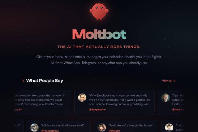 这个带着龙虾 Logo 的 Clawdbot 有何特别?官网的介绍显示,这是一个“有灵魂”的AI助手,可以帮用户清空收件箱、发送电子邮件、管理日历、办理航班值机等等,并且可以接入用户常用的任何聊天APP,所有的操作均可通过 WhatsApp、Telegram等平成,用户只需通过对话,就能操控设备自动执行各类任务。