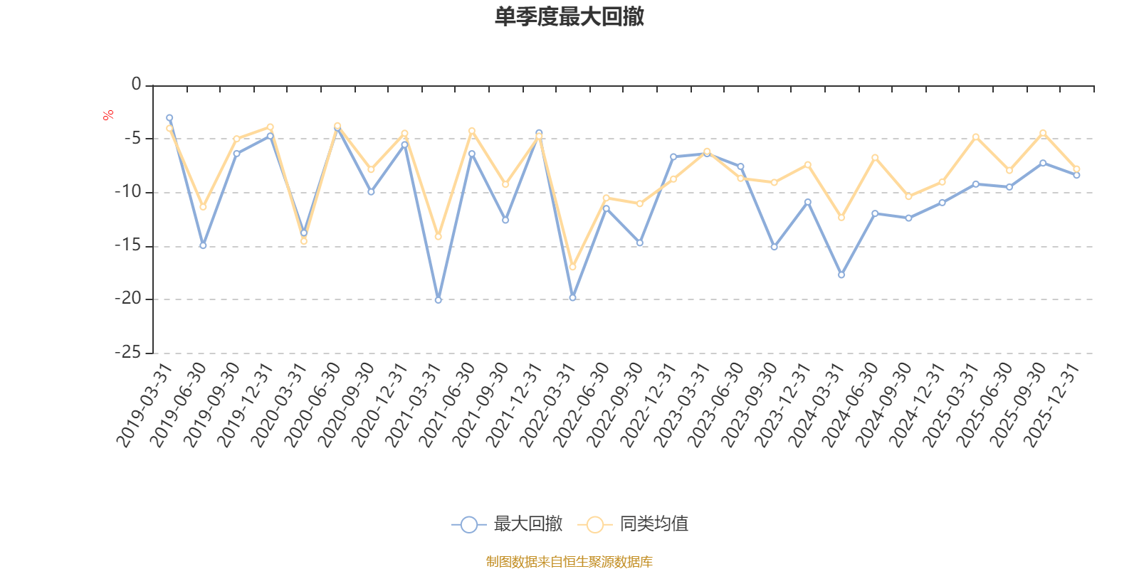 通过所选区间该基金净值增长率分位图,可以观察该基金与同类基金业绩比较情况。图为坐标原点到区间内某时点的净值增长率在同类基金中的分位数。